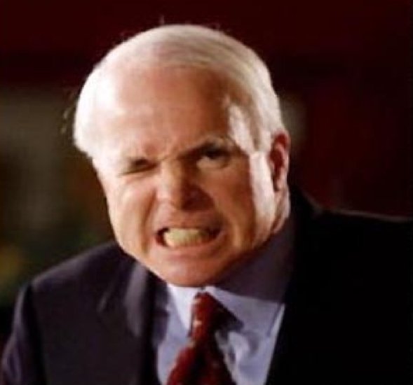 Since he has his wife's millions to support his wrinkled ass, he has no clue that banks haven't written any business loans this year. I'd like him to explain how the industry would have survived Chapter 11 without help.(?) Last year, McCain wasn't shy about sucking up to America's unions when he was running for President, but this year it seems that the thought of putting tens of thousands of Americans out of work forever means little to him.